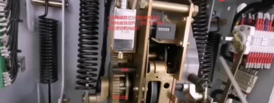 它有分閘勵磁電流時,電磁鐵就會動作,頂住下方動板,然后帶動傳動安排動作