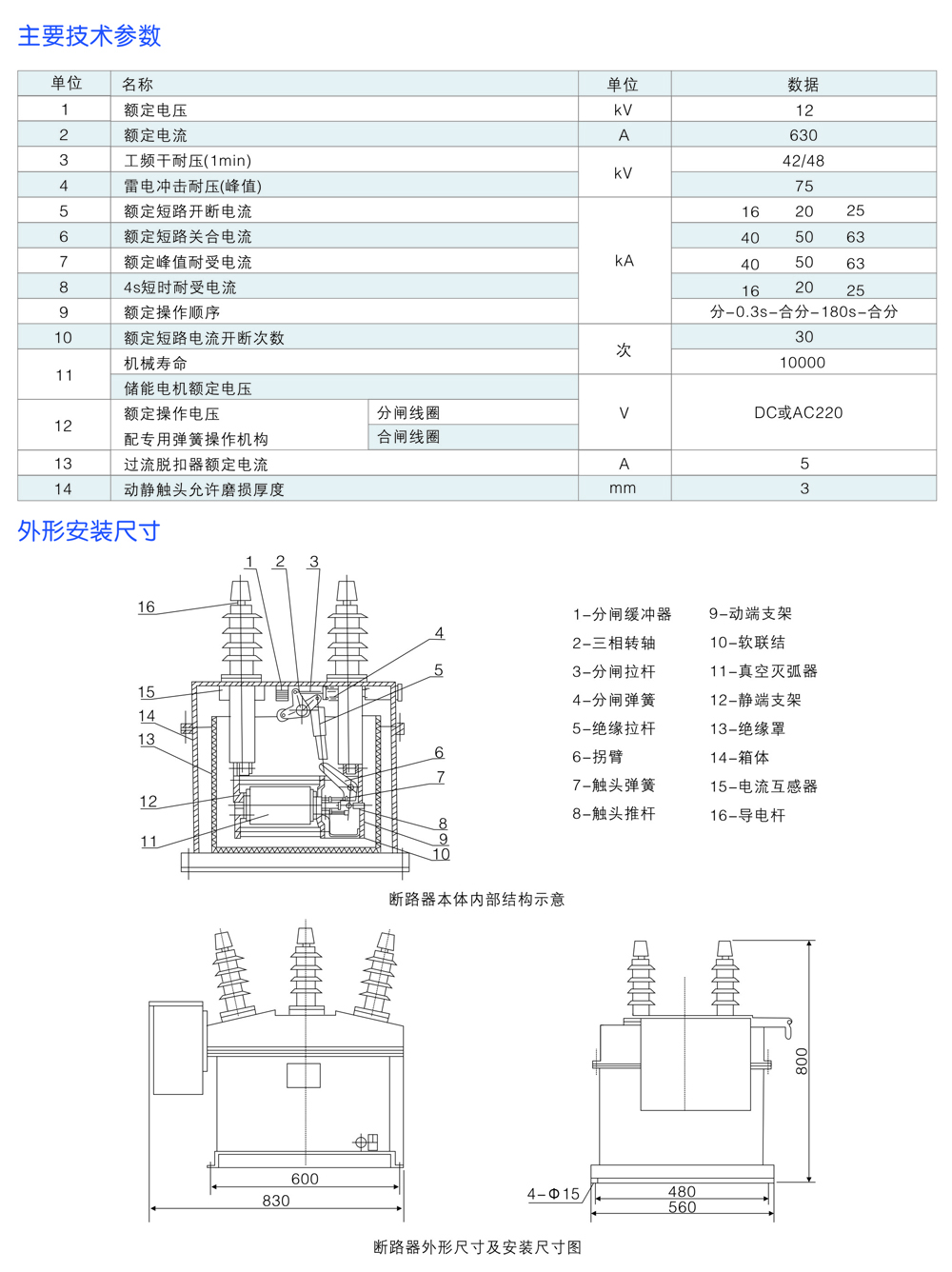戶內高壓真空斷路器